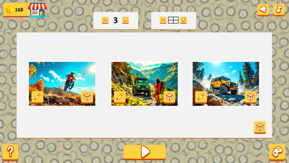 "Микс Пазл: Бездорожье" — это захватывающая игра-головоломка для любителей приключений и бездорожья! Ваша цель — собрать перемешанные изображения, меняя местами блоки, чтобы восстановить оригинальные сцены.