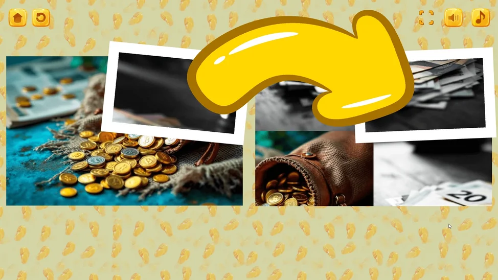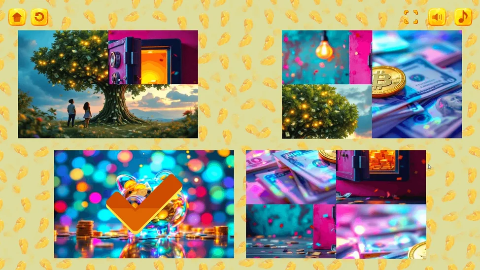 В игре "Микс пазл: Деньги" вас ждёт увлекательное путешествие по миру финансов! Разделённые на части картинки с изображением монет, банкнот и других символов денег ждут, чтобы вы собрали их обратно. Чтобы победить, нужно просто менять местами части пазла, возвращая им правильное положение. Это отличная игра для всех, кто хочет развить логическое мышление и познакомиться с основами финансов, одновременно наслаждаясь простым и увлекательным игровым процессом.