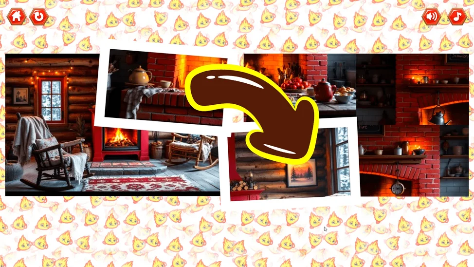 Каждый уровень предлагает уникальные и красивые изображения каминов, которые создают атмосферу уюта и тепла. Перемещая части пазла, вы не только решаете задачу, но и наслаждаетесь замечательными видами. Игра подарит вам часы увлекательного времяпрепровождения и поможет развить важные навыки.