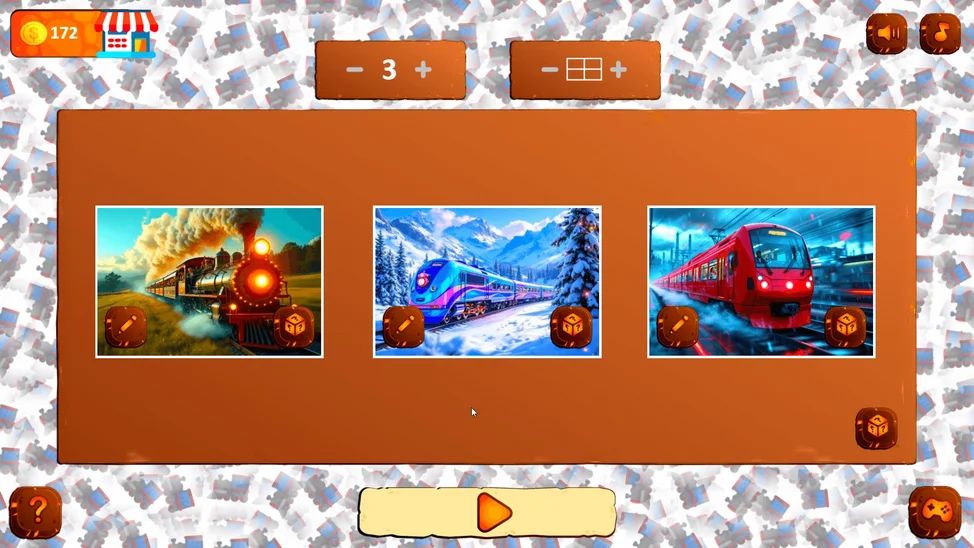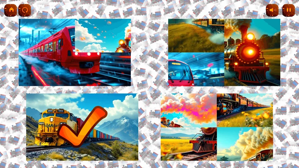 "Микс Пазл: Поезда" — это увлекательная развивающая игра для детей и взрослых! Перемешанные части красочных изображений поездов нужно вернуть на свои места, чтобы собрать целую картинку. Меняйте части местами, решайте головоломки и наслаждайтесь процессом!