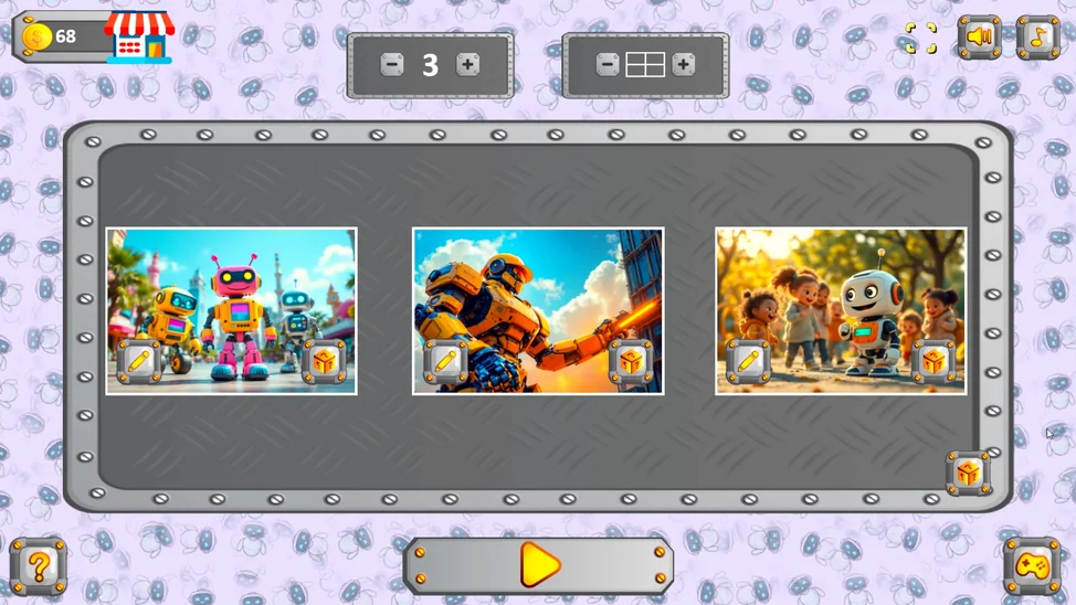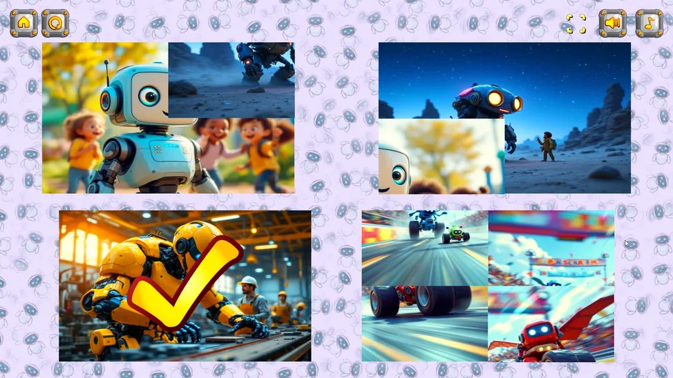 Микс Пазл: Роботы — увлекательная игра для детей, где каждый сможет стать мастером головоломок! Смешанные части картинок с роботами нужно собрать, меняя их местами.