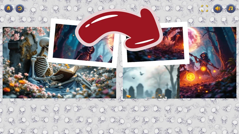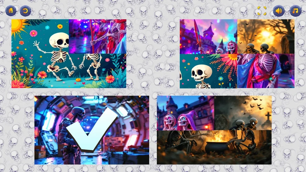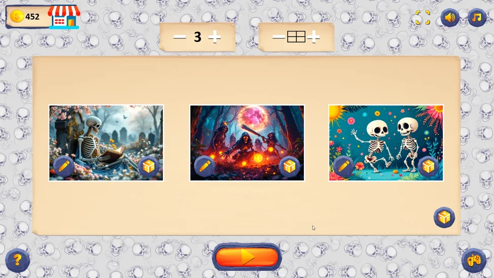 Настраивай сложность под себя и начинай весёлое путешествие по миру смешных и дружелюбных скелетов! Подходит для детей и всей семьи. Погрузись в мир головоломок и веселья!