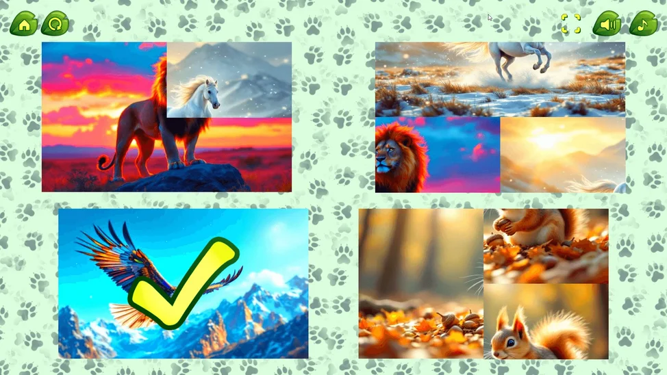 "Микс Пазл: Животные" — это яркая и захватывающая игра для детей, которая помогает развивать логику, внимание и концентрацию! Каждая картинка с животными разделена на части и перемешана. Задача игрока — собрать оригинальное изображение, меняя местами фрагменты.