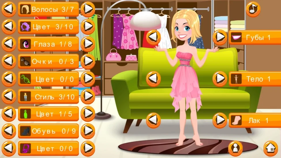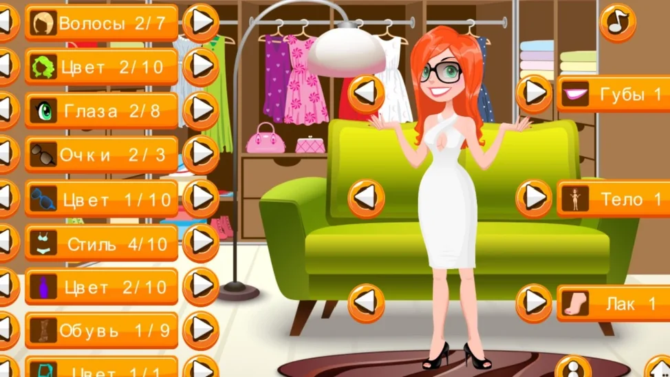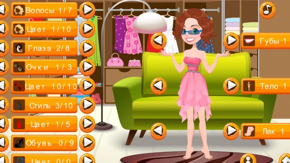 Перебирай все варианты стиля персонажа, чтобы создать свой уникальный и неповторимый образ. Время в игре неограниченно, можно не торопиться.