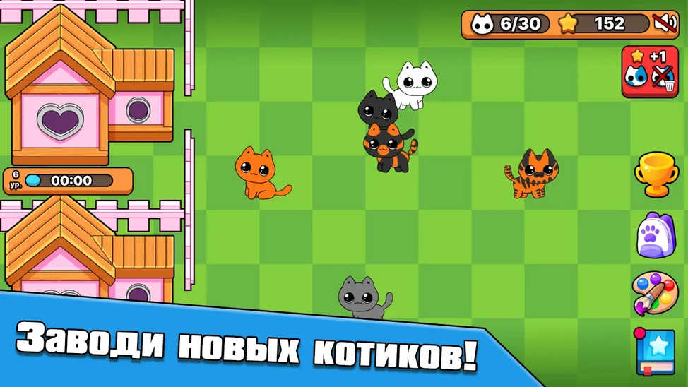- Помести котиков с разным окрасом в домик, чтобы получить новые необычные окрасы.
