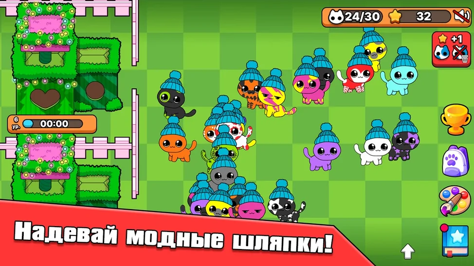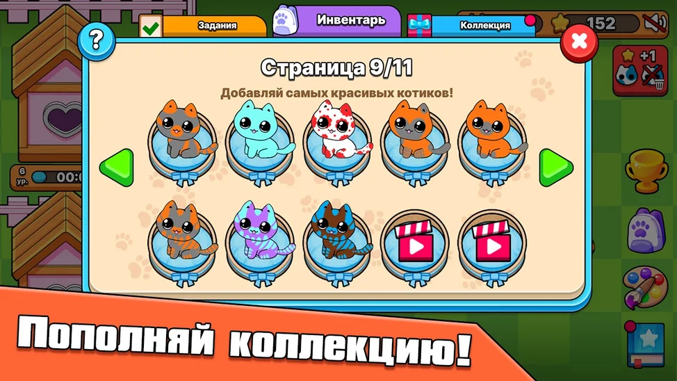 - Если котики недовольны, помести лишних в коллекцию или перетащи на кнопку удаления.