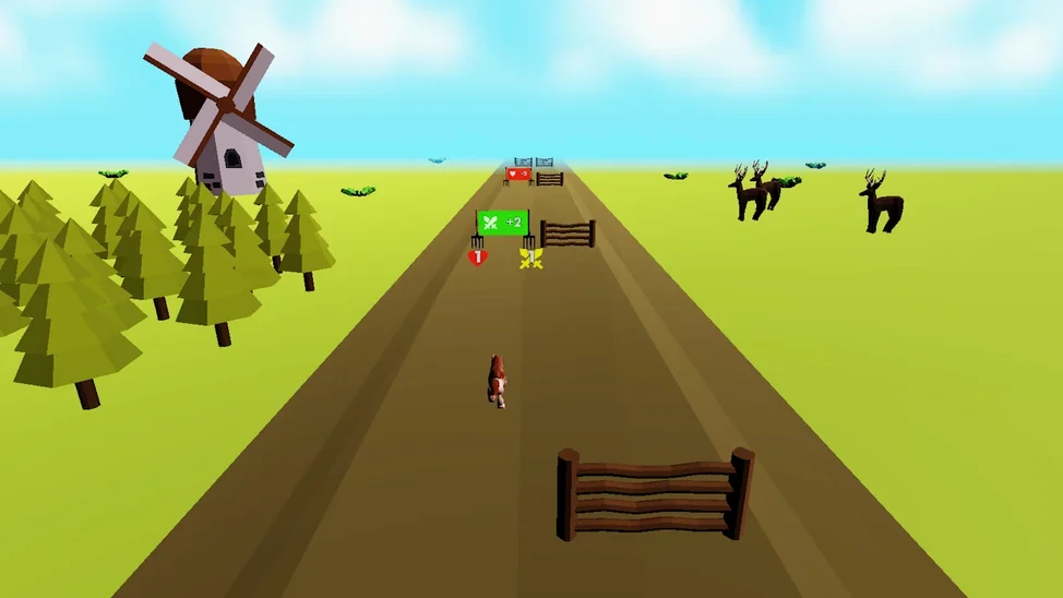 💥 Собирай бонусы с усилениями — увеличивай атаку ⚔️ и здоровье ❤️. Чем дальше бежишь, тем сильнее становится твой конь!