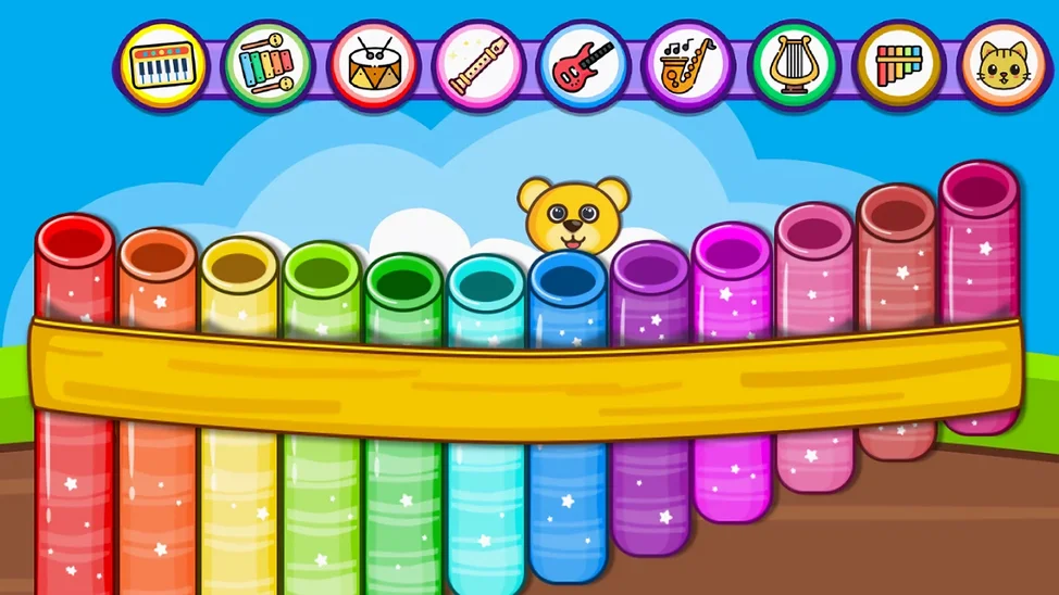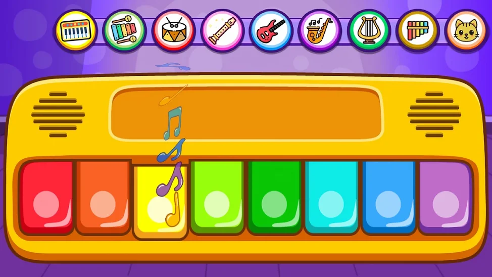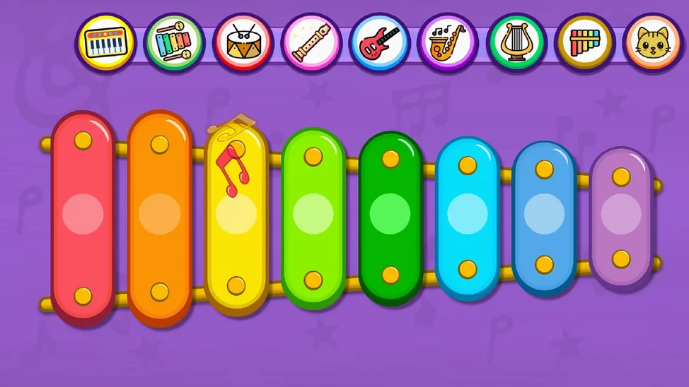 - Интерактивная игра: дети могут нажимать на инструменты, чтобы услышать ноты, что способствует интерактивному и захватывающему процессу обучения. Такой практический подход помогает детям лучше понимать и ценить музыку.