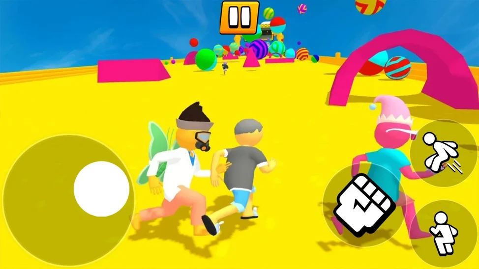 — Физический бой: Бей, пинай и сталкивай врагов в ragdoll-боях, чтобы расчистить путь.