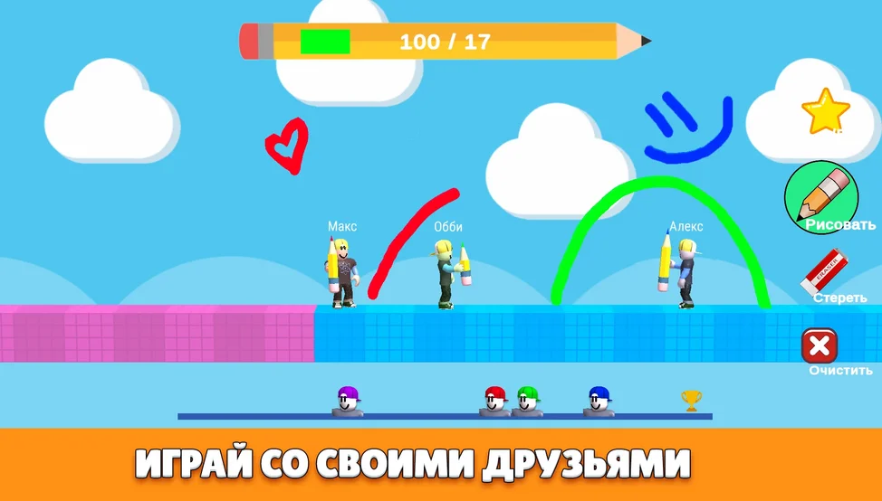 🌟 Если вы любите приключения, а также увлекательные игры с друзьями, то эта игра для вас! Погрузитесь в мир Обби из Роблокс и нарисуйте свой путь к победе вместе с ним! Не упустите шанс стать частью захватывающего мира паркура и приключений!
