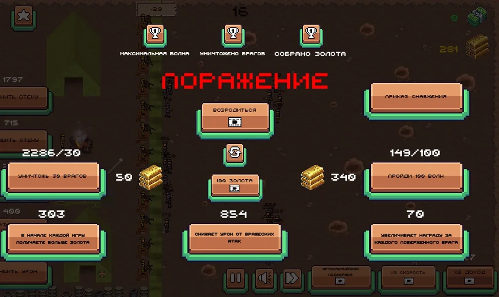 Ерунда ради просмотра рекламы. С каждой волной просто увеличивается кол-во пехоты и хп у неё. После 15й волны противники уже заканчиваются до середины поля. После 100й волны все тоже самое. Нудятина с рекламой.