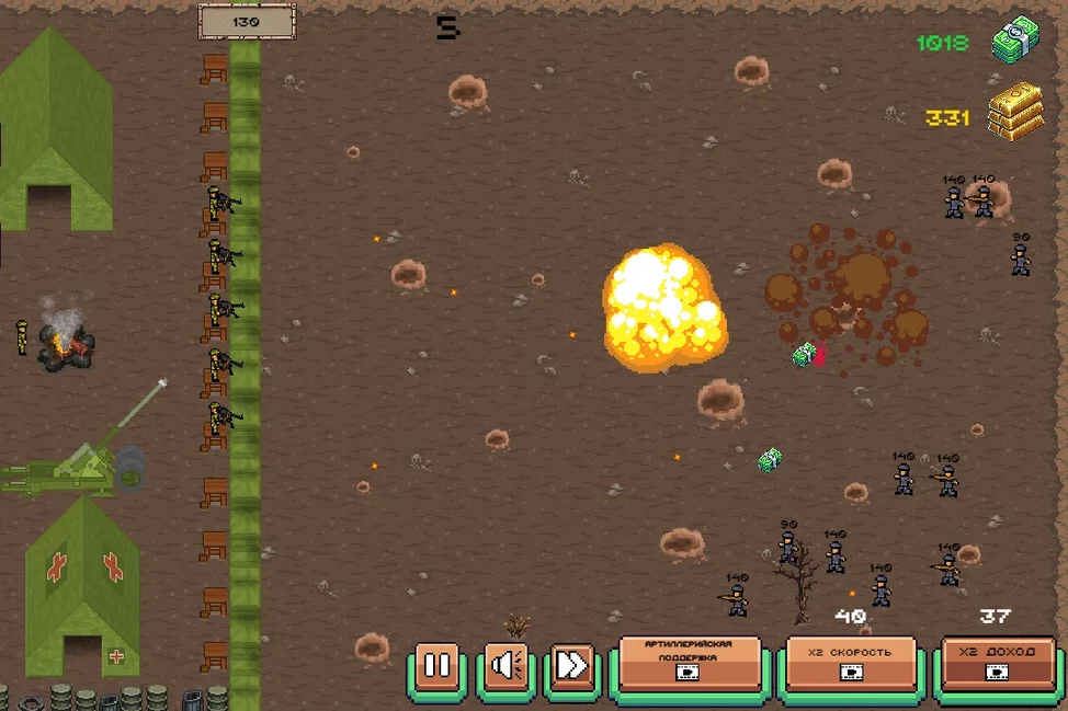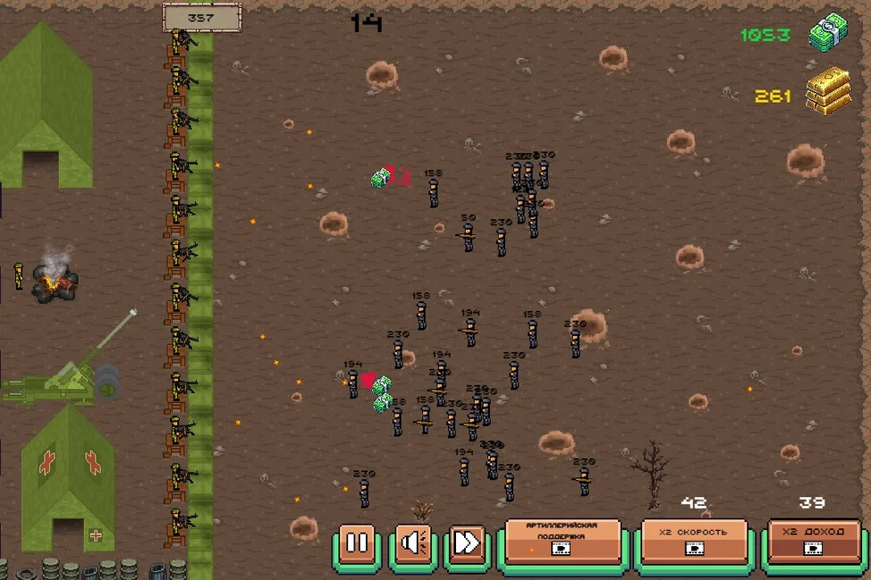 Улучшай башни, увеличивай скорость боя, активируй артобстрел и зарабатывай вдвое больше ресурсов с бонусами. Используй полученные средства для усиления обороны, строй непробиваемую линию фронта и продержись как можно дольше.
