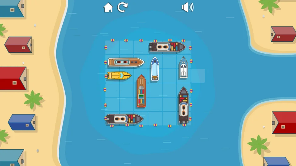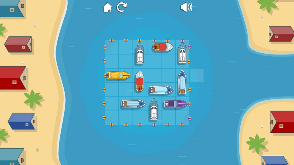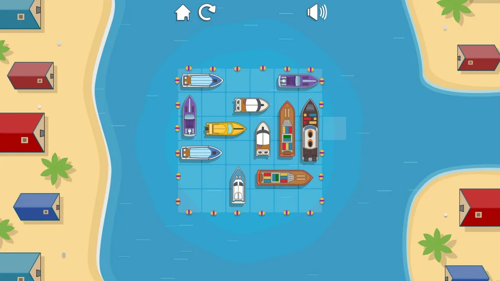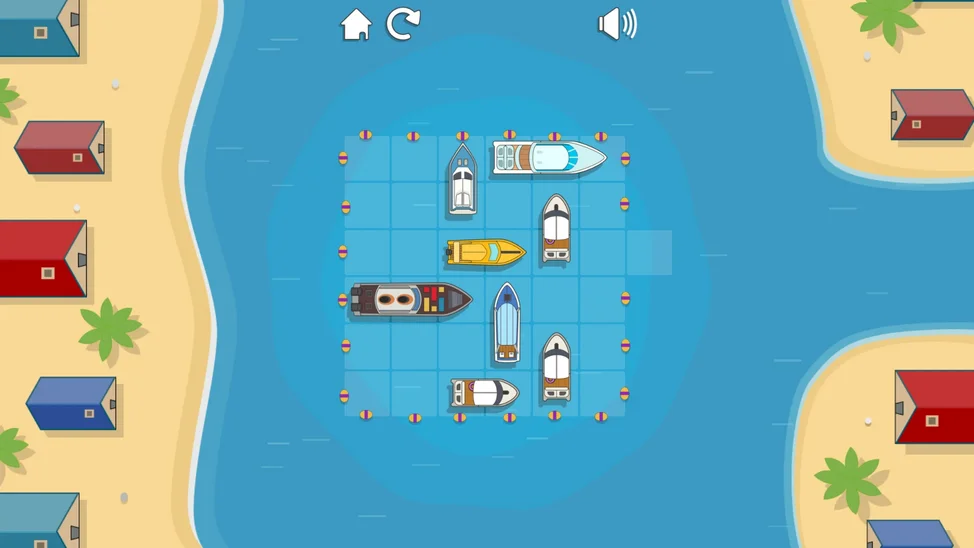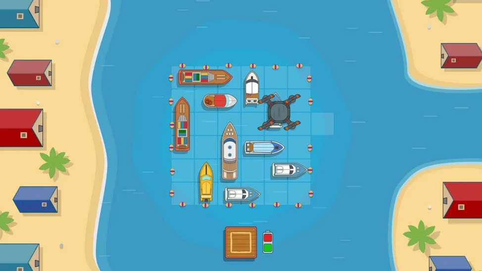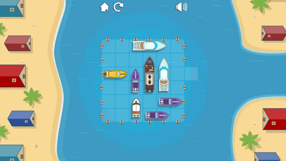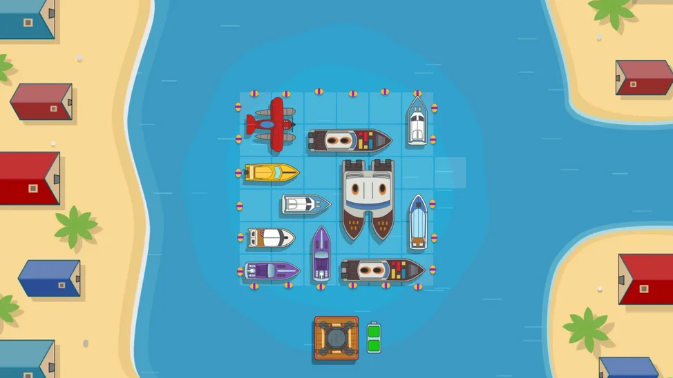 Ваша задача — расставить разноцветные лодки, юркие катера и даже внушительные яхты так, чтобы освободить выход для главного катера. Но будьте внимательны: каждое плавсредство движется только вперёд или назад, подобно настоящему транспорту на воде.