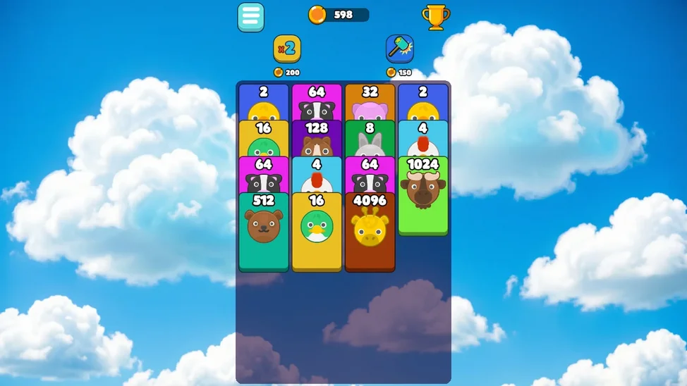 Соединяй одинаковых животных, перетаскивая карты и стопки карт. Выращивай животных выше уровнем. Следи что-бы поле не переполнилось