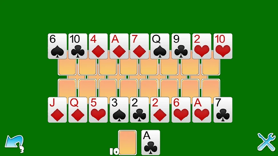 Чтобы пройти уровень, вам нужно убрать все карты с игрового поля, не исчерпав карты из своего запаса.