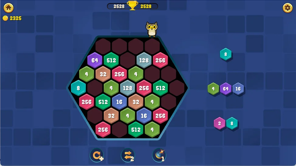 👍Пазл 2048: Слияние блоков имеет 2 режима игры: Шестиугольник и Головоломка с блоками.