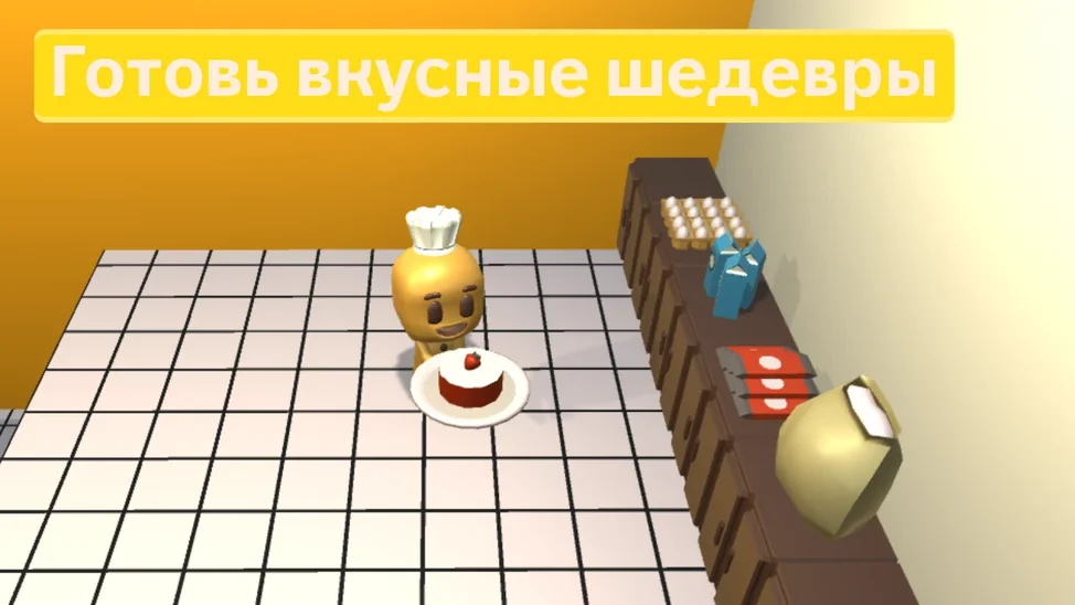 - Бегать по кухне — [WASD] / [Экранный джойстик]