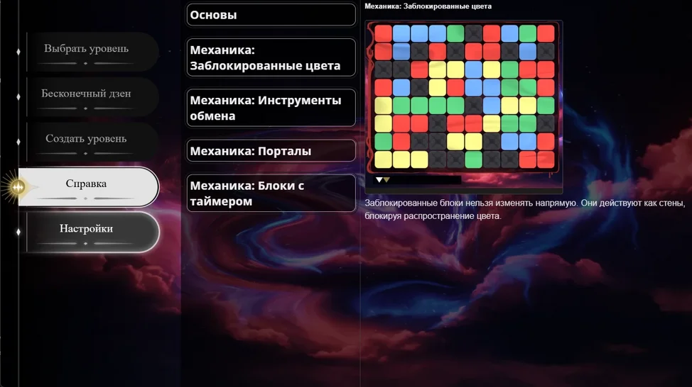 Проверь свои навыки решения головоломок! Выбирай подходящие цвета, заливай плитки и закрась поле до того, как закончатся ходы. Тебя ждёт множество уровней с разнообразными механиками, бесконечный режим без счётчика ходов для расслабления, а также возможность создавать и делиться собственными уровнями.