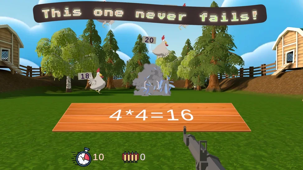 Получите задачу. Продумайте решение. Ждите, пока курица с вашим решением не появится из курятника. Дальше дело за малым — ведь у вас в руках ружьё! Но будьте внимательны: эти пернатые вечно пытаются вас обмануть!