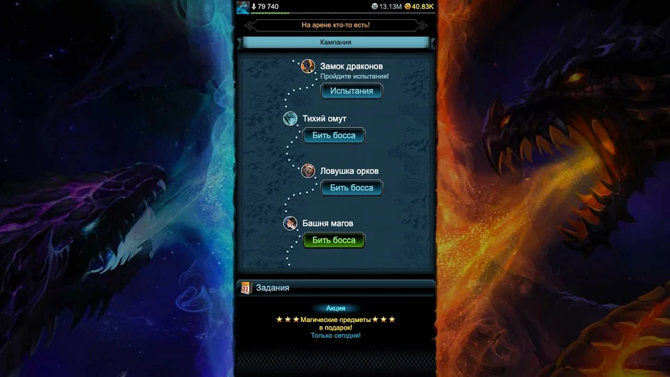 Арена гильдий — в этом волшебном мире ты не должен идти в бой в одиночку. Присоединяйся к гильдии! Объединяйтесь с единомышленниками, чтобы вместе сражаться на Арене гильдий, участвовать в масштабных Войнах гильдий и объединённых Рейдах против древних драконов и коварных колдуний. Собирай мощнейших героев, чьи мечи и магия поведут гильдию к славе и триумфу!
