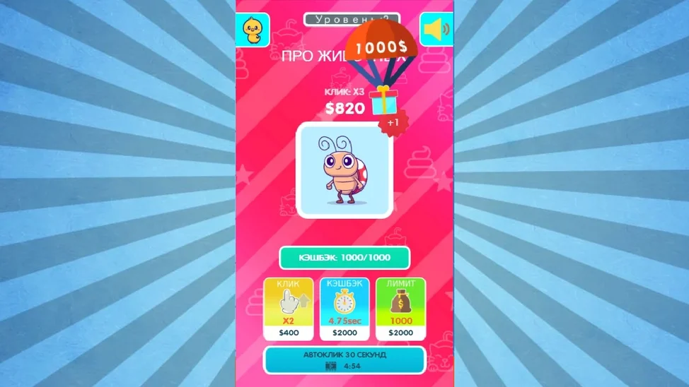 Веселый и увлекательный кликер, который понравится детям и взрослым. Интуитивно понятный и простой игровой процесс поможет скоротать время, в любой обстановке. Скорей заходите в игру и начинайте кликать!