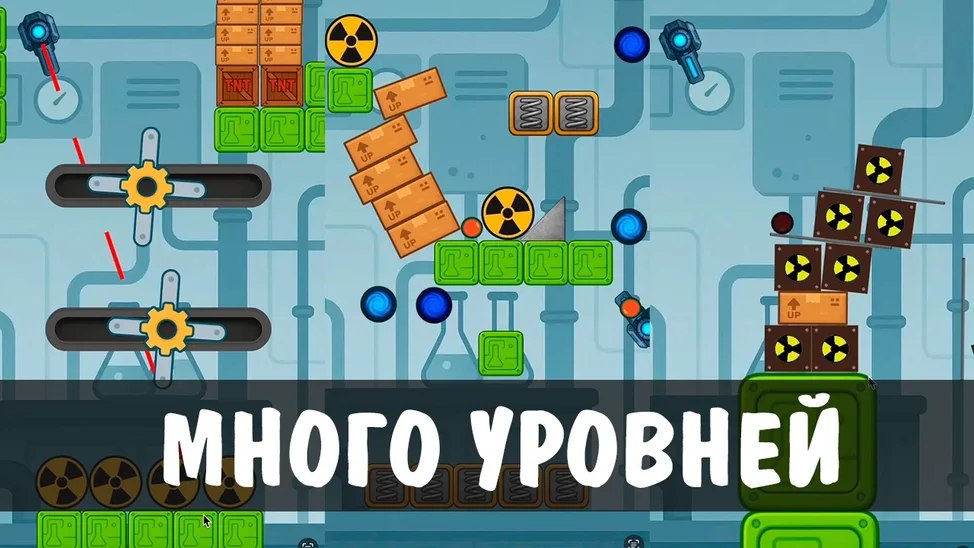 В этой гиперказуальной игре ты управляешь пушкой и сбиваешь радиоактивные объекты в бездну. Взрывающиеся бочки, порталы, вращающиеся механизмы и ядерный сарказм прилагаются. Пройдёшь ли ты все уровни или останешься в зонах отчуждения?