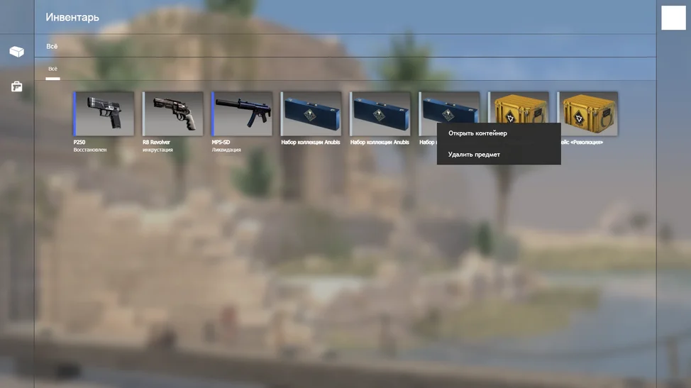 Нажмите на кейс или предмет чтобы вызвать интерактивное меню, после чего выберите действие которое хотите совершить с предметом. Нажимая на "Открыть контейнер" вы попадаете в меню контейнера, где вам нужно нажать "Открыть контейнер" чтобы получить новый предмет. Новые контейнеры можно купить в меню слева.