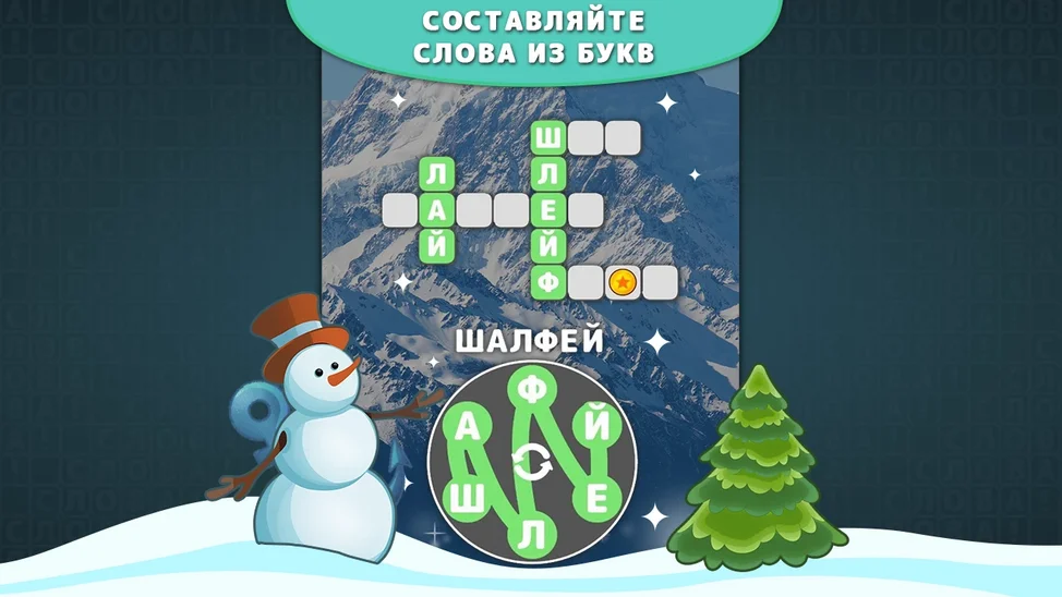 Играть и угадывать слова из букв очень просто: Смотрите на кроссворд и пытайтесь найти в нем слова, составляя их из букв в нижней части экрана. Соединяйте буквы в круге внизу, проводя пальцем по экрану на мобильных устройствах. На компьютере нажмите на первую букву в круге внизу и, не отпуская кнопку мыши, переместите ее к следующей букве нового слова.