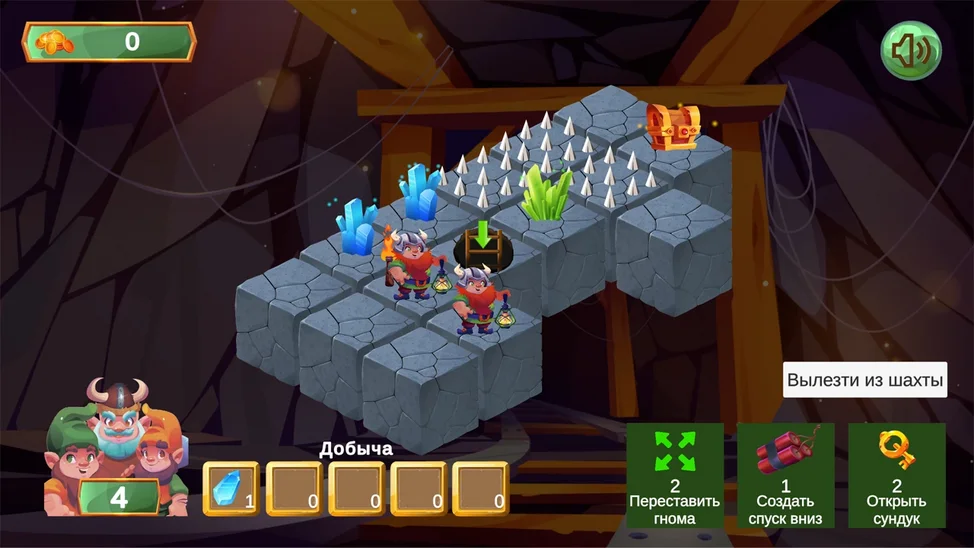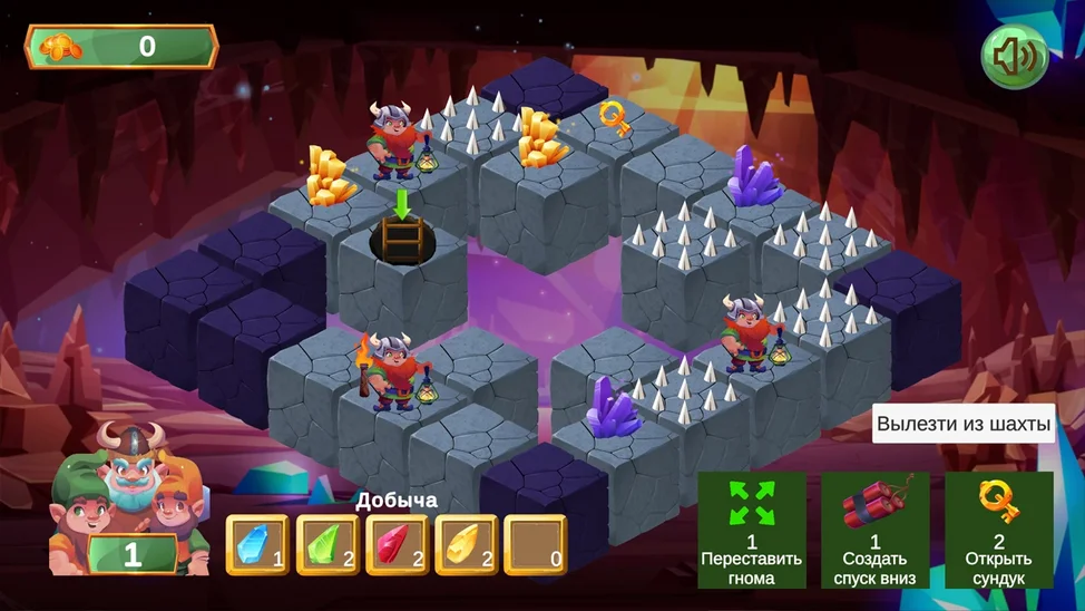 Сколько пещер посетит твоя команда гномов прежде чем кончатся ходы? Исследуйте подземелье спускаясь все глубже, открывайте новые уровни и копите золото чтобы занять лидирующую позицию среди всех игроков!