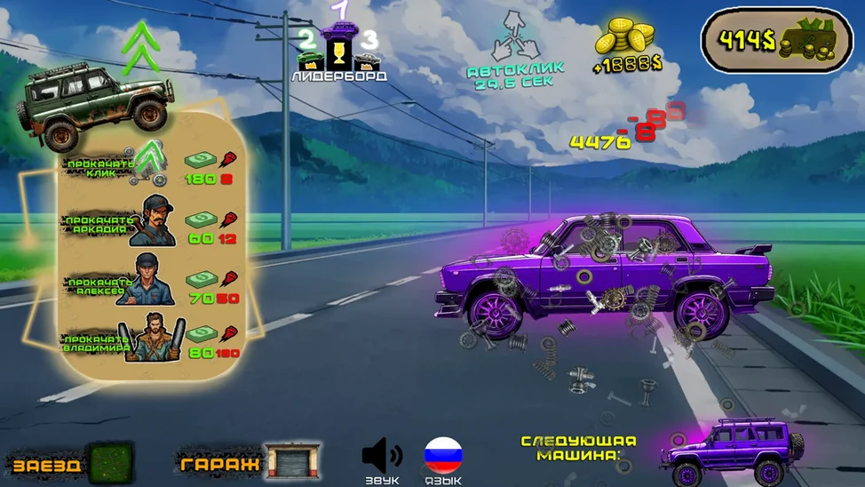 Эта игра объединяет два жанра: кликер и гонки на русских автомобилях. Улучшайте свой клик, чтобы быстрее открывать новые машины. Прокачивайте двигатели и устанавливайте нитро, чтобы всегда приходить к финишу первым!