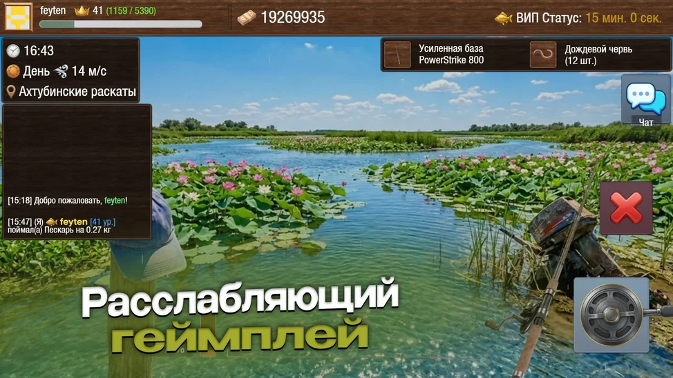 Живой мир: Десятки живописных локаций со сменой дня и ночи, где клев зависит от времени суток.
