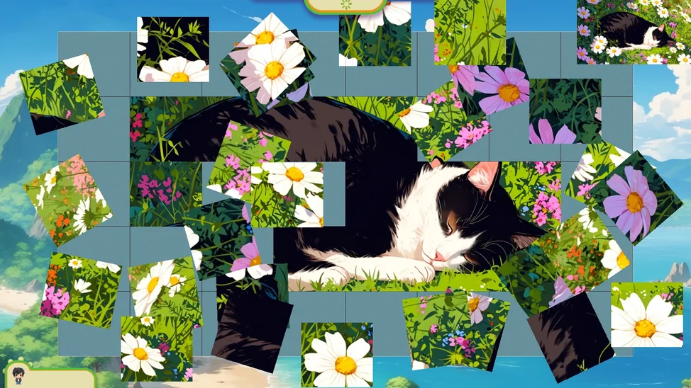Располагайте фрагменты мозаики в ячейки, чтобы собрать цельную картину.
