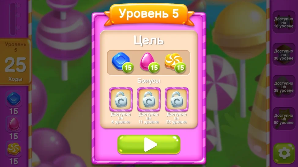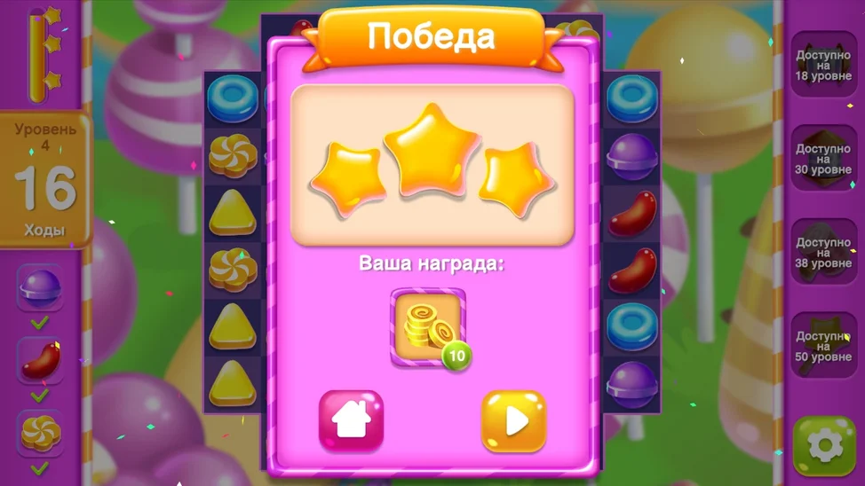 - Секретные комбинации, чтобы получить бустеры и мега-конфеты