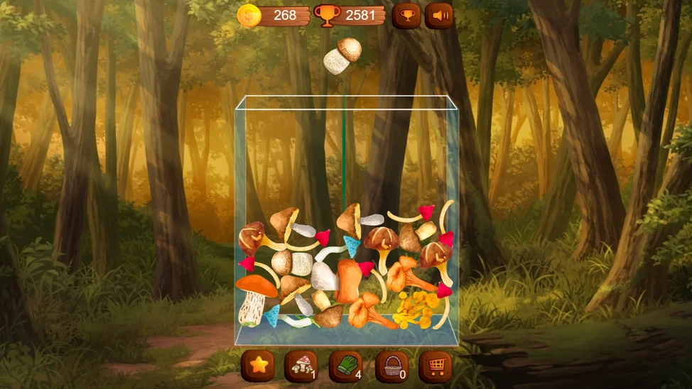 - Детали леса — при сборе грибов в вашу корзинку попадают веточки, ягоды и травинки, делая процесс сбора еще более реалистичным.