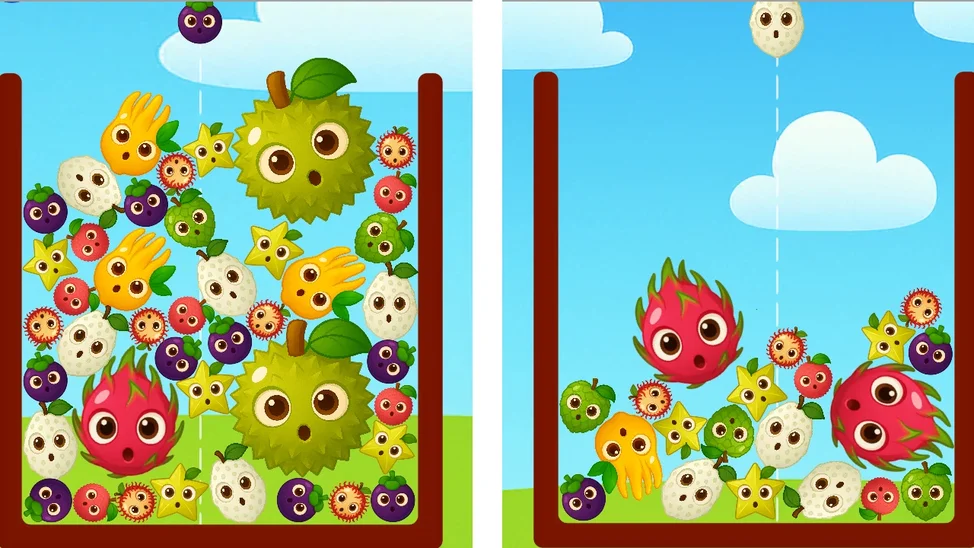 Ваша главная задача – соединять одинаковые фрукты, чтобы они превращались во всё более сочные и крупные плоды, пока вы не добьётесь главной цели – вырастить огромный, аппетитный фрукт! Каждый уровень – это новый вызов, требующий стратегии, скорости и внимательности.