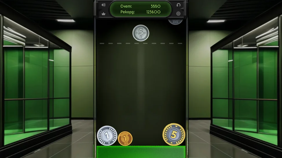 Необычная игра в вариации жанра 2048! Соединяйте одинаковые монеты, чтобы получать более ценные! Попробуйте дойти до максимума, не выйдя за границы стеклянного бокса!