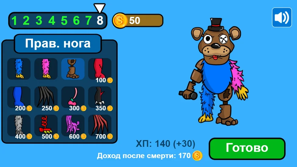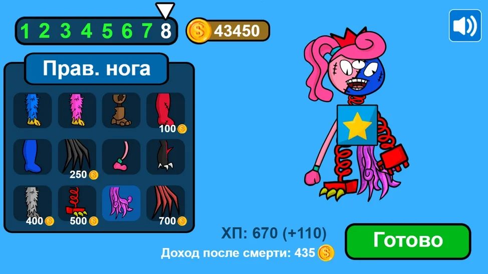 Выбирай части тела, чтобы создать своего монстра.