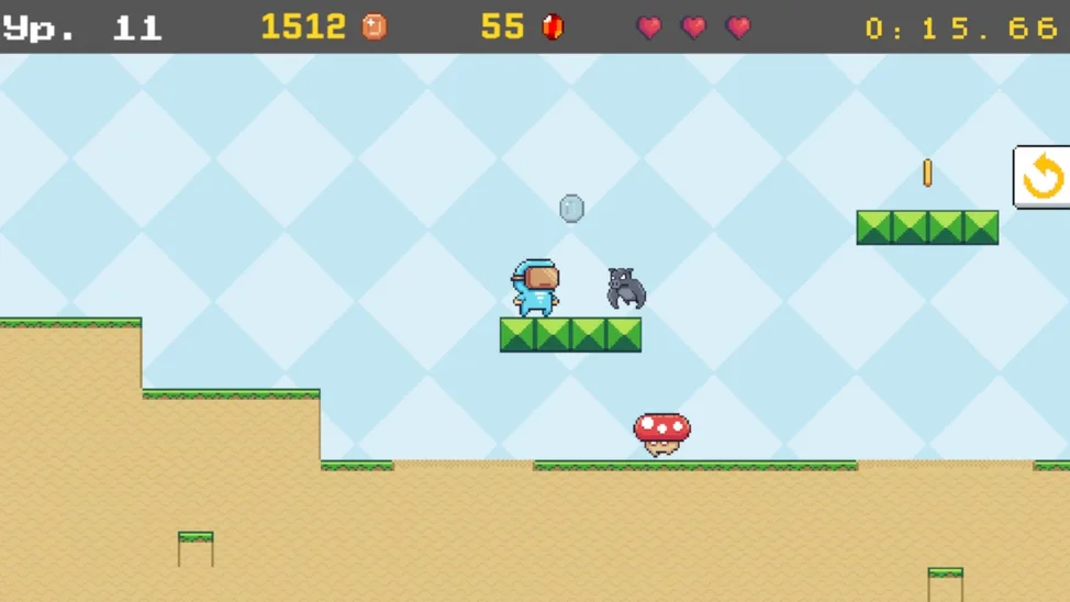 Классический платформер со сбором монеток и прыжками по головам монстров. Но если проходить уровни максимально быстро, можно попасть в таблицу рекордов.