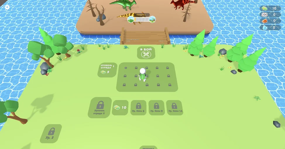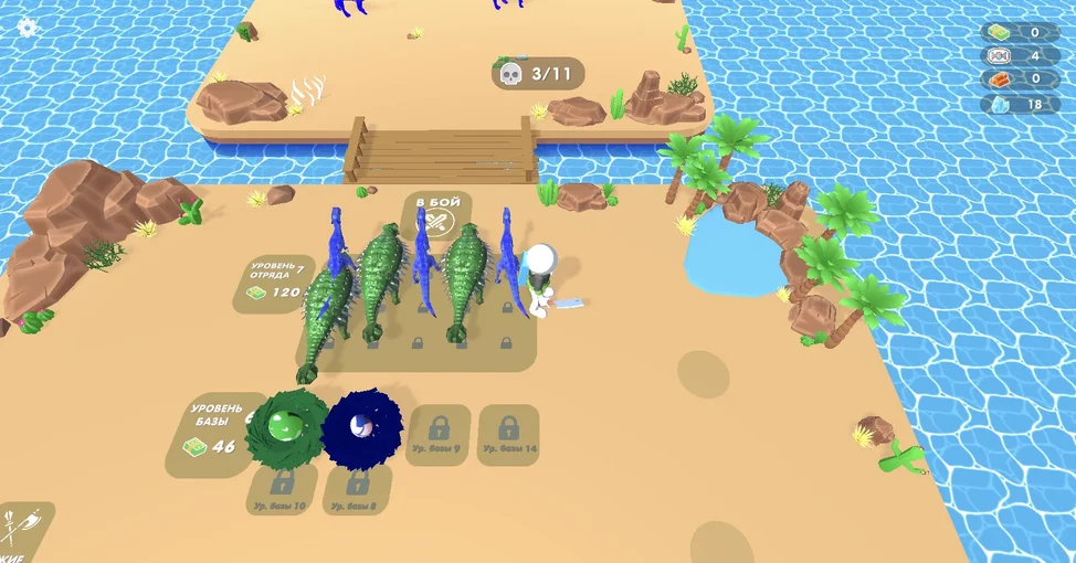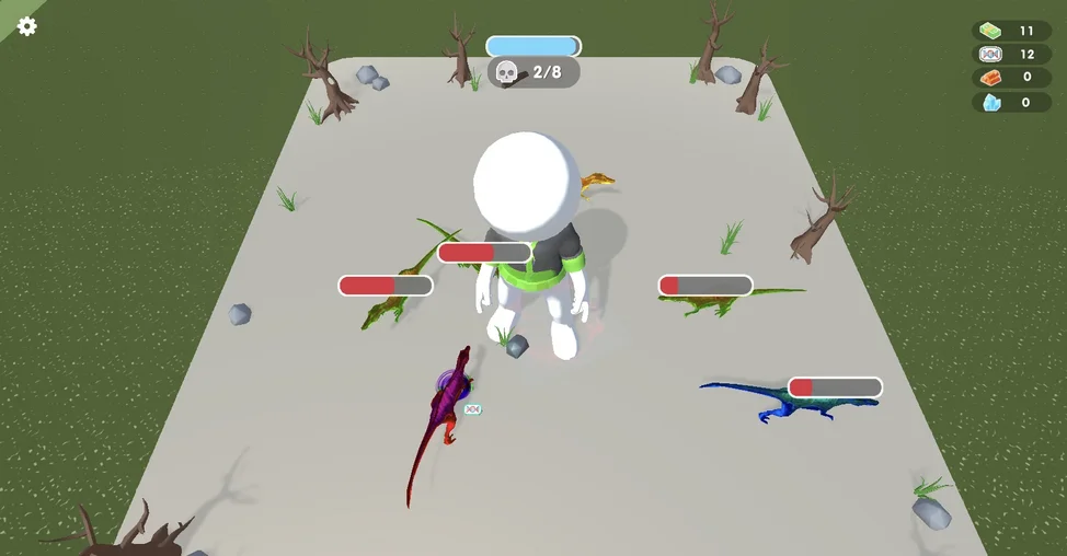 Открывай новых динозавров и усиливай свой отряд. Убей всех врагов на уровне чтобы перейти к следующему.