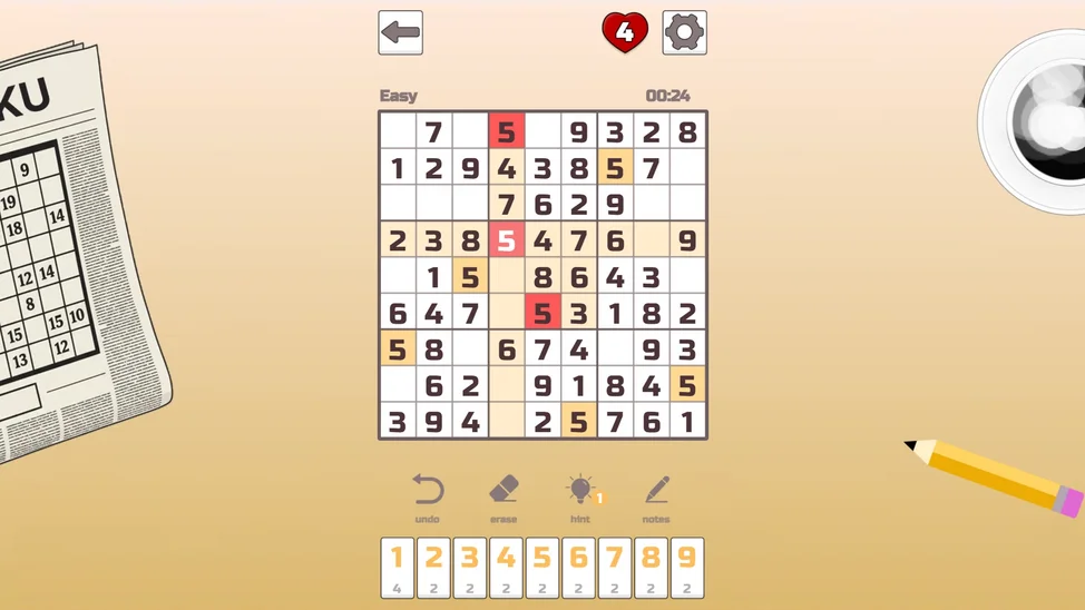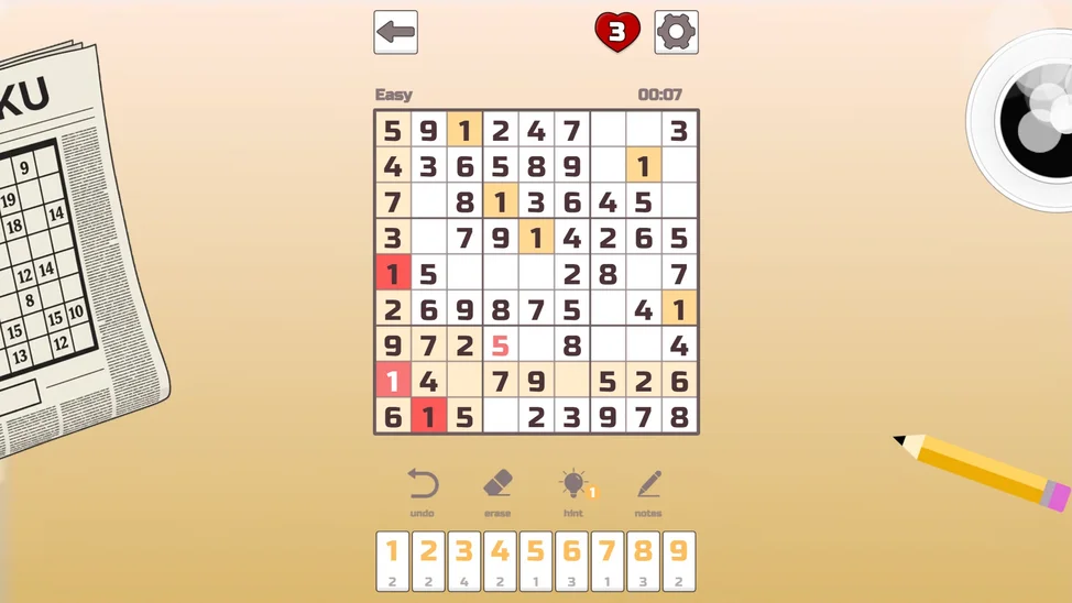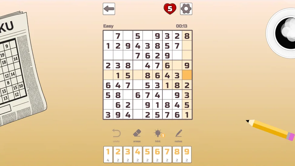 Игра предлагает тысячи тщательно сгенерированных пазлов разного уровня сложности: от лёгких, идеальных для расслабления, до экспертных, которые заставят ваши извилины работать на полную мощность. Это больше, чем просто цифры — это элегантный танец логики, концентрации и стратегического планирования. Оттачивайте свой ум, находите умиротворение в решении задач и испытывайте неповторимое чувство удовлетворения, когда последняя цифра становится на своё идеальное место.