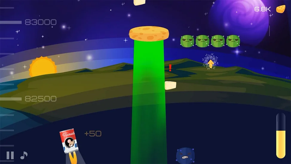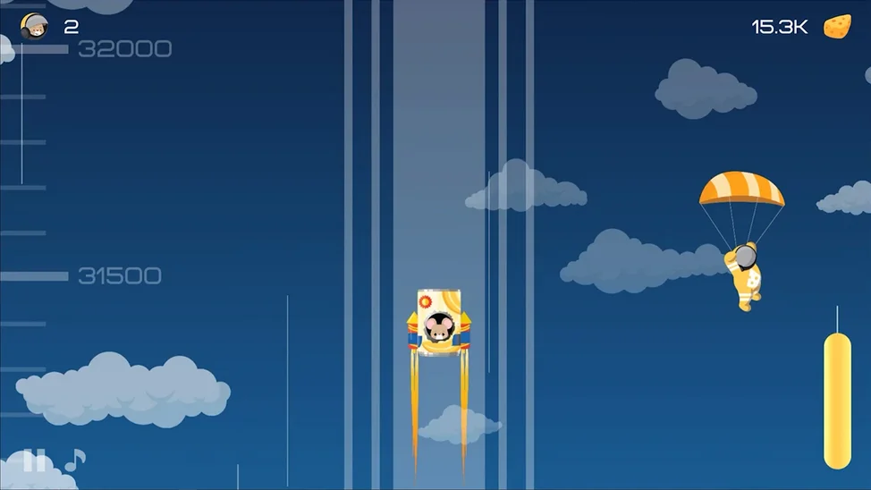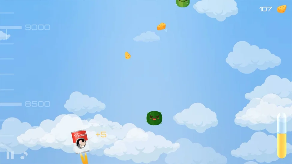 Геймплей: Собирайте летающие сырные кусочки, чтобы заправить двигатель. Больше сыра - выше ракета! Модернизируйте свою банку - прицепите супер-пружинку и добавьте дополнительные ракеты, чтобы преодолеть земное притяжение.