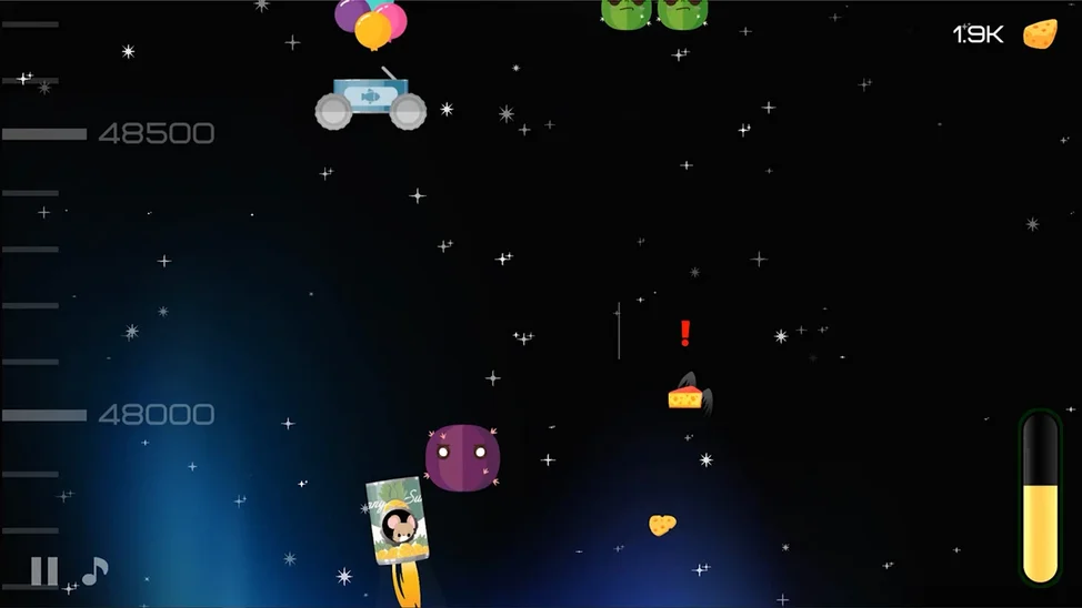 Собирайте сыр: Летающие кусочки сыра — это ваше топливо. Ловите их, чтобы поддерживать горение двигателя и не упасть.