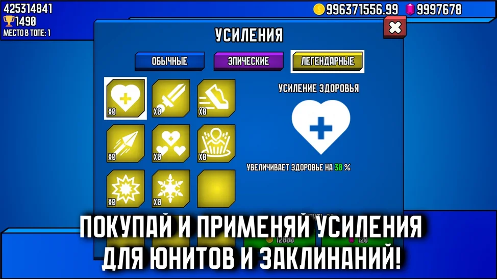 Нажмите на иконку юнита или заклинания, чтобы выбрать его.
