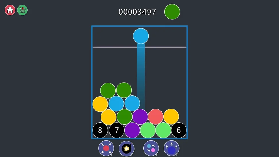 Цель игры - собирать комбинации из трех и более кругляшей, плотно прижатых друг к другу. Можно собрать комбинации из 3, 4 и из 5 кругляшей. Если заполнить игровое поле до верхней границы (переполнить стакан), то игра закончится и будет показан ваш счёт, а также выплачено вознаграждение в соответствии с вашими результатами.
