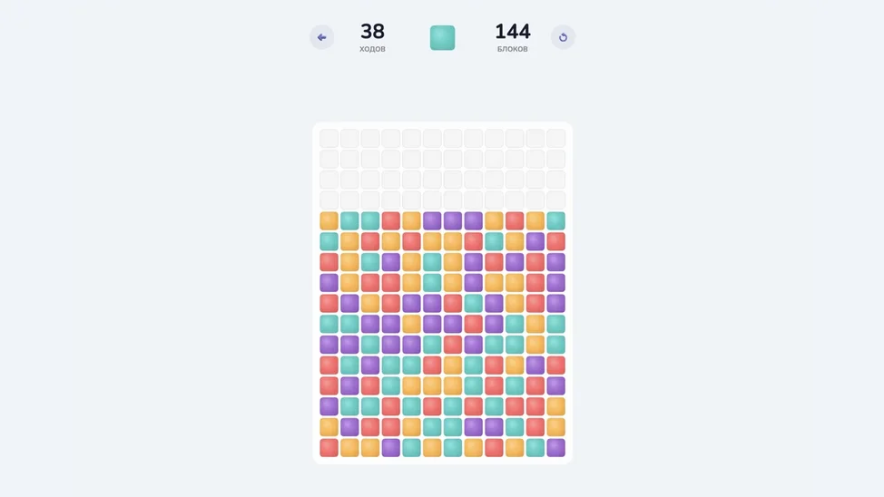 Цветобашня — головоломка-антитетрис, где нужно не строить, а разрушать! Перед тобой башня из цветных блоков. Сбрасывай блоки сверху, совпадай по цвету — и вся связная цепь одного цвета исчезнет. Освободившееся место заполнят падающие блоки, которые могут запустить новые каскадные реакции. Цель — полностью уничтожить башню за ограниченное число ходов.