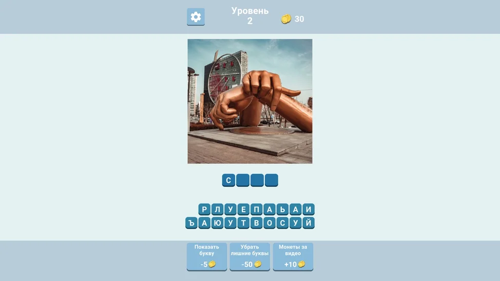 - вы можете воспользоваться подсказками во время игры (показать 1 букву или убрать все неверные буквы)