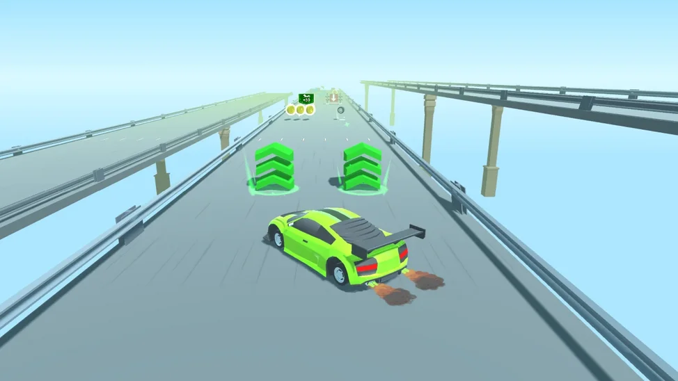 Зарабатывайте очки, собирая бонусы на прямой трассе, соревнуйтесь с другими игроками в прохождении специальных трасс на время, обустраивайте свою автомастерскую и коллекционируйте крутые автомобили!