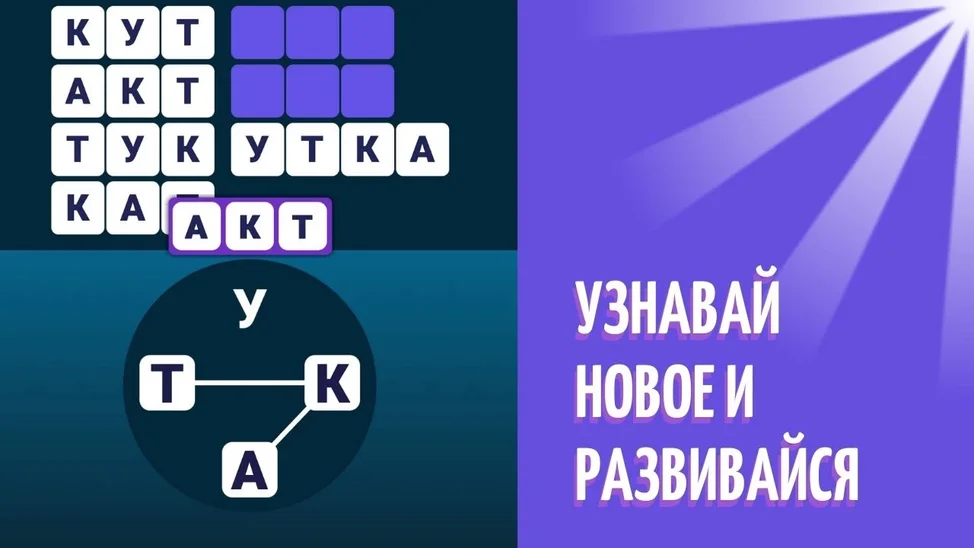 Цель игры - составить слова из предложенных букв. Соединяйте буквы не отрывая палец или мышку, отпускайте, когда слово готово