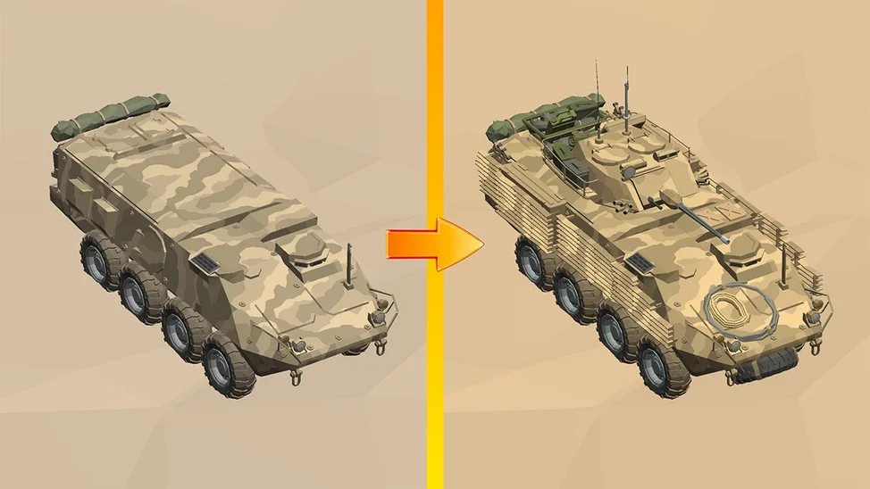 Стань военным специалистом, командуй производством военного транспорта и делай поставки в горячие точки, чтобы разбогатеть! Строй сооружения, расширяй военную базу, чтобы твоя армия была довольна! Тебе нужно производить первоклассную военную технику и заработать как можно больше денег. По ходу игры нужно будет стратегически управлять своими ресурсами и инвестициями, чтобы развивать свою военную империю и доминировать над своими врагами. Эта игра обеспечит вам часы увлекательного геймплея и захватывающего веселья. Стройте свою базу и готовьтесь покорять мир! Вся военная база принадлежит тебе, начни со скромной и устаревшей базы, инвестируй в её развитие, наладь инфраструктуру, производи и продавай высококачественную военную технику. Покупай новые военные базы и грамотно распредели финансы между ними! Создай лучшие условия для своей армии. Развивай сухопутную технику своей армии, а так же развивай воздушные силы армии! Продавай лучшие танки и истребители, а также джипы и вертолёты.