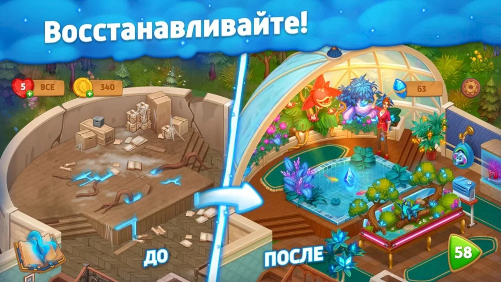 Сотни магических уровней: наслаждайтесь разнообразием головоломок, мощными усилителями и эффектными комбинациями, которые добавляют азарта и динамики